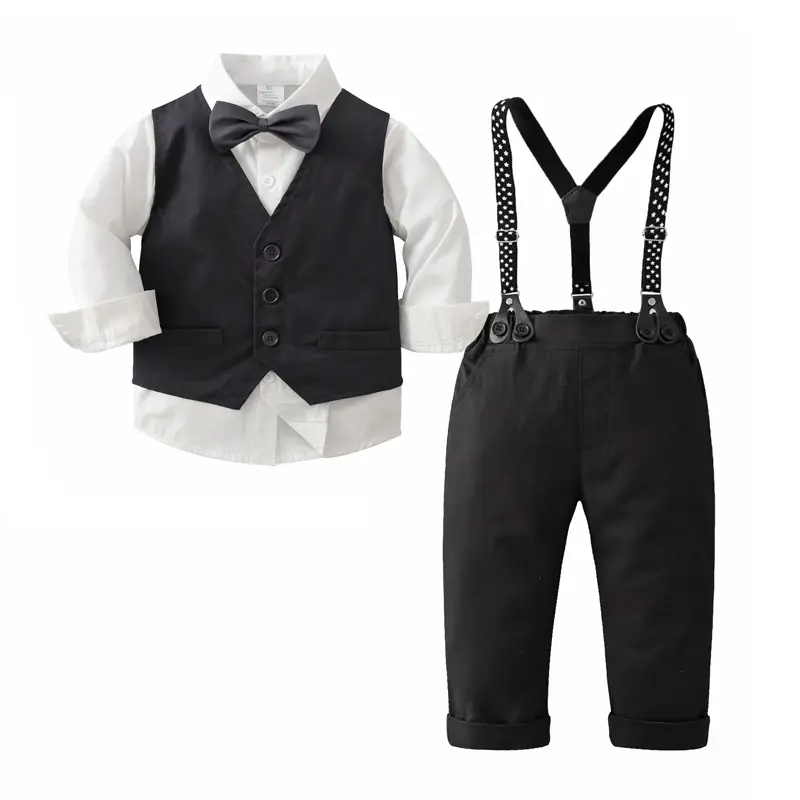 Boy’s Set with Vest, Suspenders & Bowtie (Black & White)