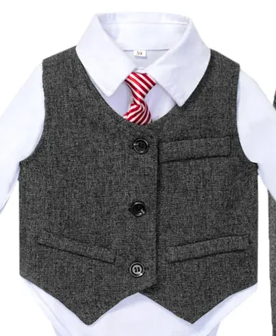 Boy’s Set with Vest & Necktie (Charcoal Gray & White)