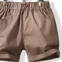Boy’s Short Set with Suspenders (Brown,White, Khaki)