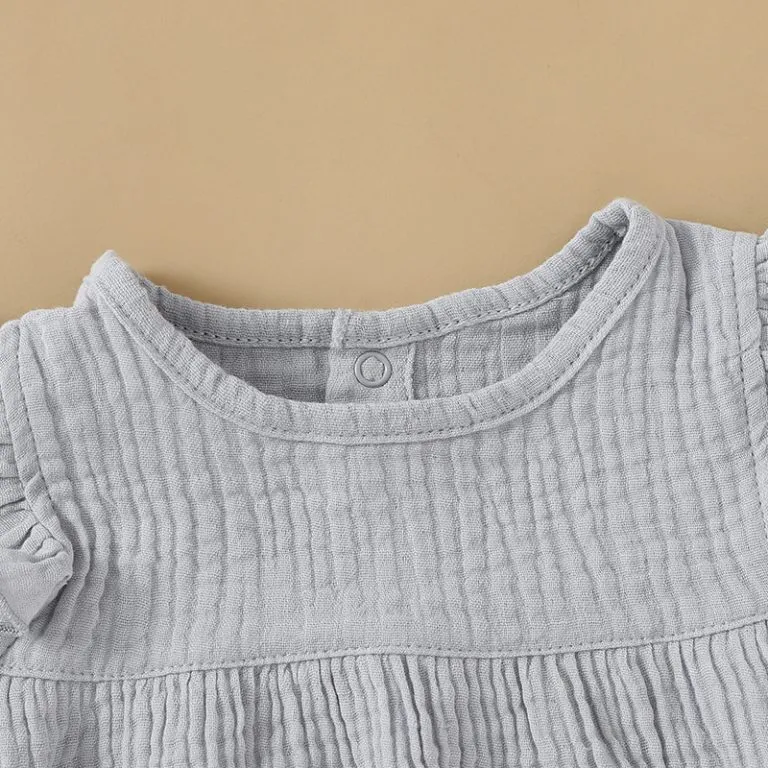 Girl’s Gray Organic Cotton Muslin Dress
