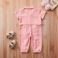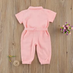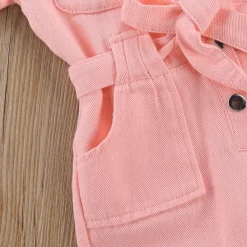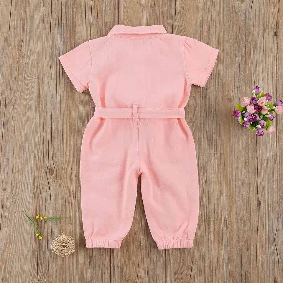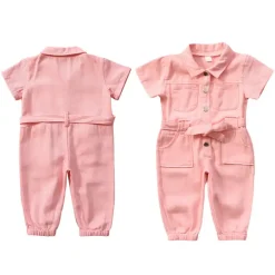 Girl’s Pink Denim Jumpsuit Snap Closure