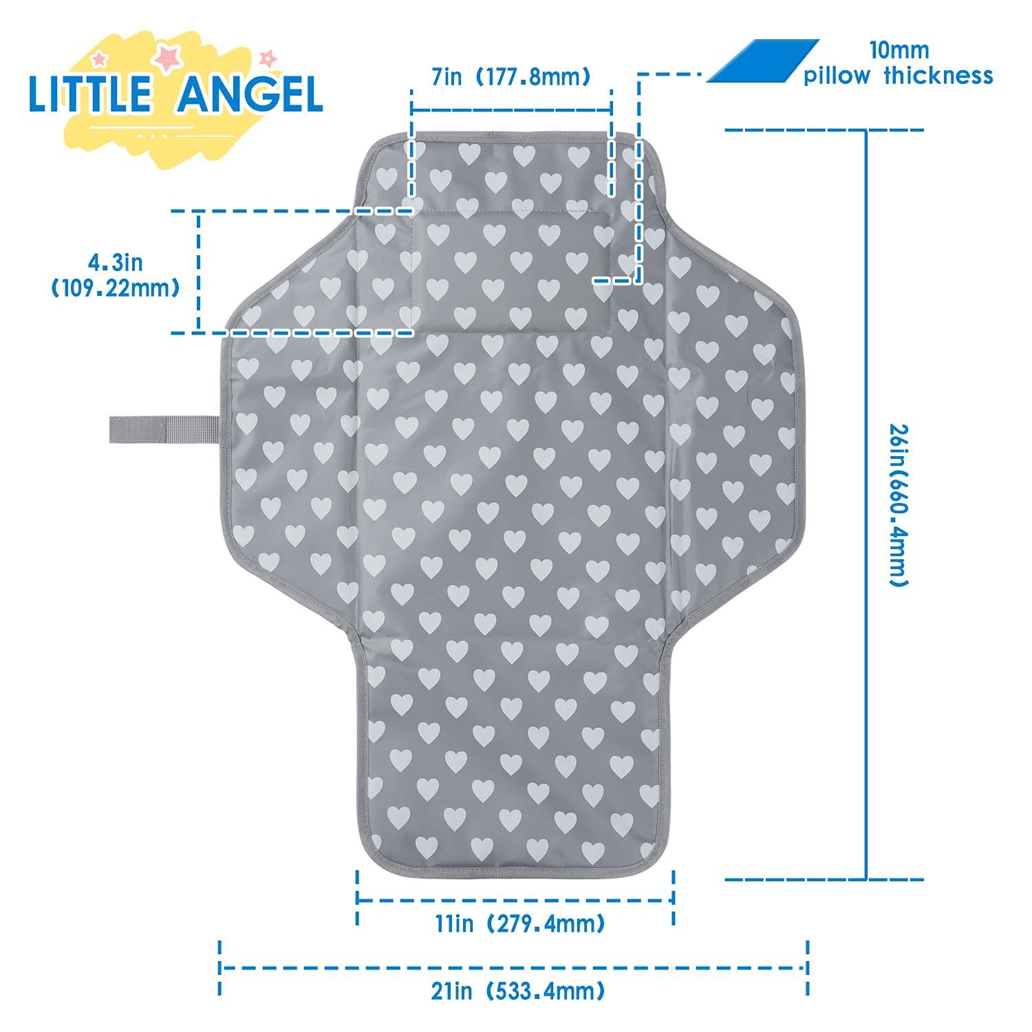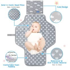 - Large Size: This portable changing pad is large enough for all babies (27×22 in), with built-in soft cushioned pillow for great comfort and convenience. The portable baby changing station is very lightweight and compact when folded so you can change your baby’s diaper anywhere.