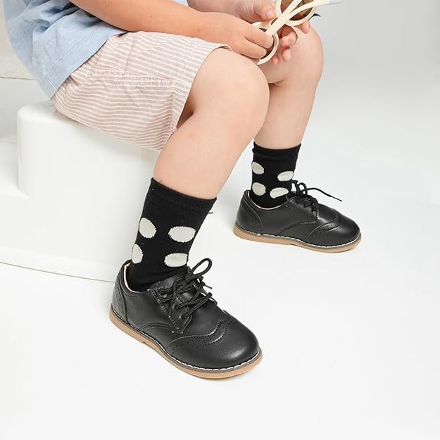 • Adjustable & Non-slip: The lace-up closure design fixes well onto our little friends’ feet and the tightness can be adjusted appropriately according to the baby’s foot shape to make the shoes fit well and not easily fall off. These toddler oxford soles are made of non-slip soft rubber which can provide great grip. Children can run around in these shoes all day with no complaints.